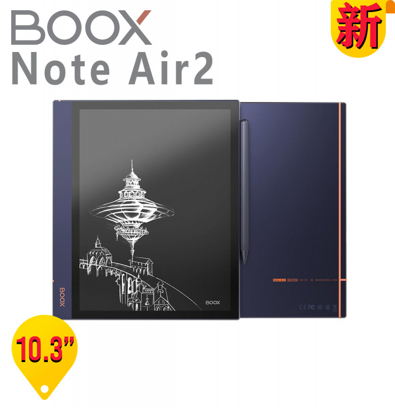 - BOOX Note Air2 10.3 吋電子閱讀器,重力傳感器專為自動轉向,輕鬆地快轉換直式或橫式閱讀。結合電子書與電子筆記功能,結合你的專業,延伸多元使用;搭載全新科技 E Ink 純平高清墨水屏、前螢幕閱讀燈光源可依環境調節色溫,有效降低藍光造成的傷害,與減少長時間使用 3C 設備的疲勞,即使在陽光下也無眩光,讓閱讀更加舒適。